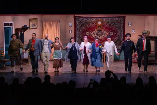 Перед началом долгожданной премьеры на вопросы представителей СМИ ответили режиссер спектакля Тамерлан Дзудцев, автор пьесы и исполнитель роли отца семейства Габыцаевых Асахмат Айларов и народная артистка РСО-Алания, исполнительница роли фельдшера Диана Черчесова.