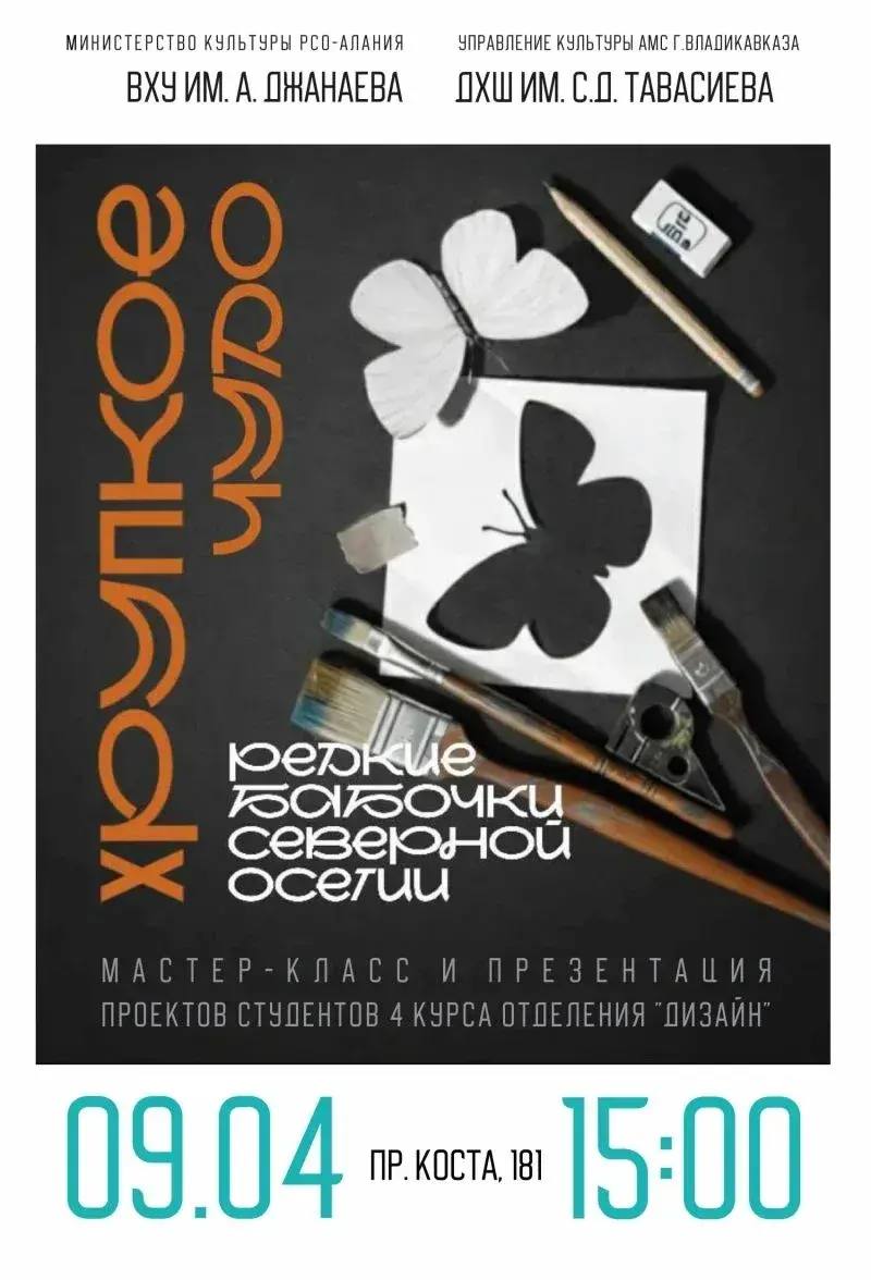 В выставочном зале Детской художественной школы им.С.Д.Тавасиева состоится презентация передвижной выставки «Хрупкое чудо — редкие бабочки Северной Осетии»