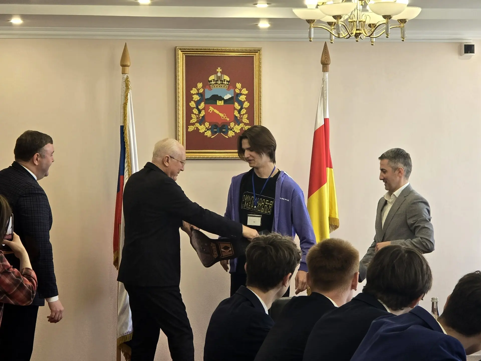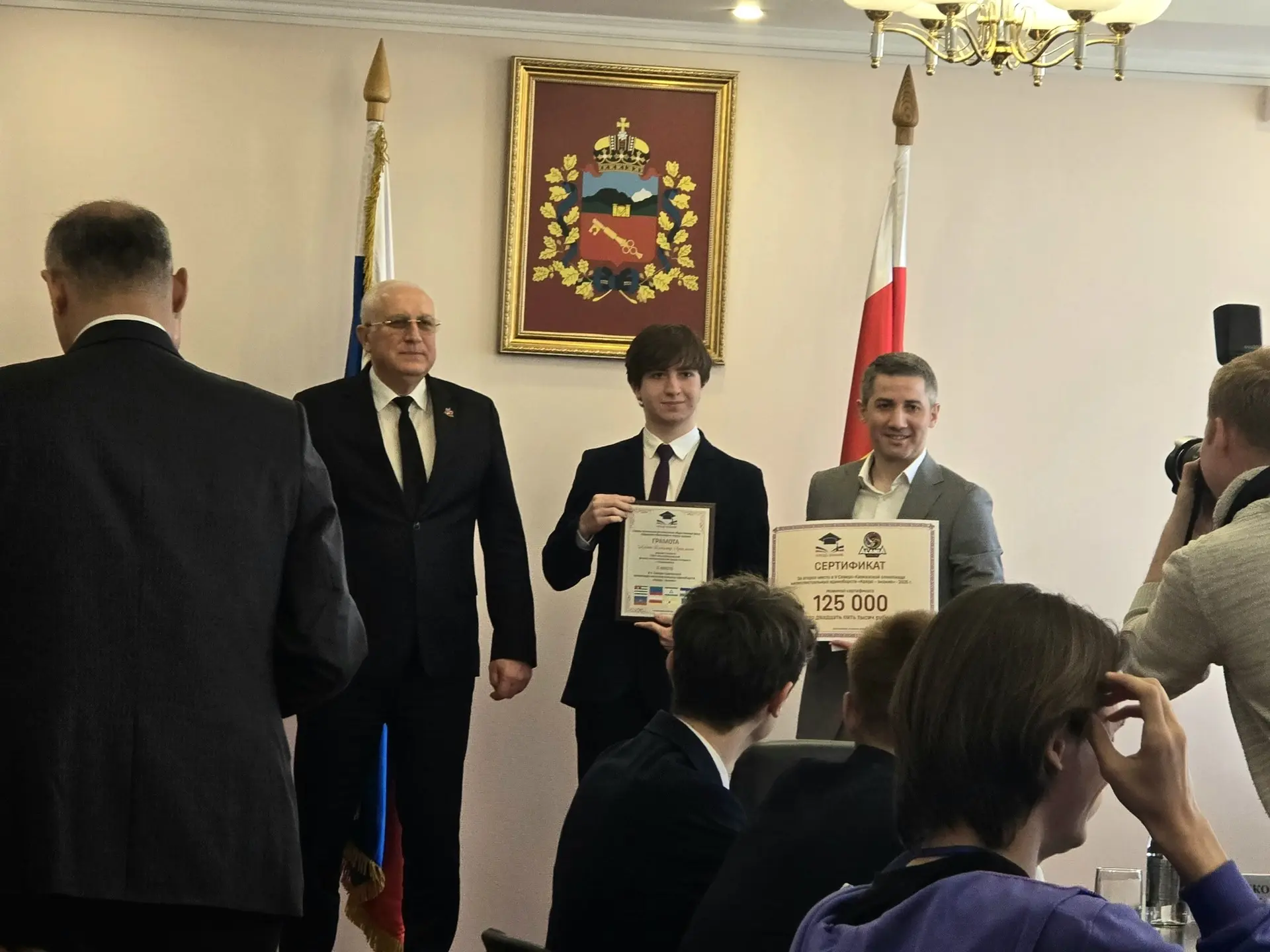 Церемония награждения прошла с участием Главы муниципального образования город Владикавказ Вячеслава Мильдзихова, министра образования и науки РСО-Алания Эллы Алибековой, вице-президента Фонда поддержки образования «Кредо-Знание» Тимура Дзгоева и ректора Владикавказского института управления Мадины Цуциевой.