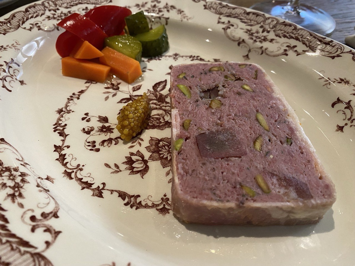 Для дебютного ужина шеф-повар подготовил ряд захватывающих блюд: террин из теленка с маринованными овощами, улитку с кремом из картофеля, судака с грибами и мирпуа, говядину по-бургундски и крем-карамель с грецким орехом, которая дополнена черносмородиновым сорбетом.
