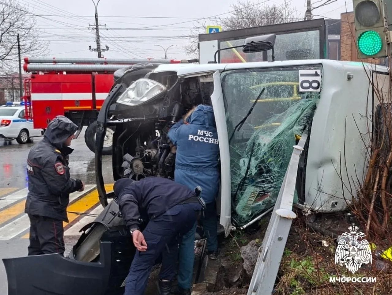По данным МЧС авария произошла на улице Гадиева. Столкнулись «Лада «Гранта» и микроавтобус, следовавший по маршруту №18. В результате ДТП микроавтобус опрокинулся, заблокированы оказались 4 человека. Специалисты МЧС деблокировали пассажиров и передали их медиками. Также помощь врачей потребовалась водителю легкового автомобиля. Пострадавшие госпитализированы.