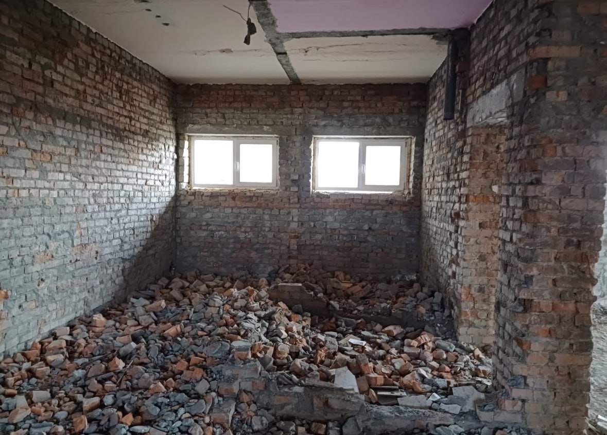 На текущем этапе выполняется демонтаж внутренних отделочных материалов, после чего начнется ремонт пищеблока для большего удобства в эксплуатации.