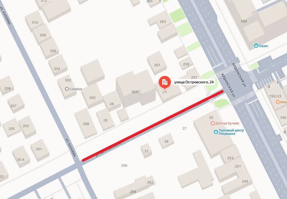 по улице Островского от ул. Колиева до ул. Ардонской