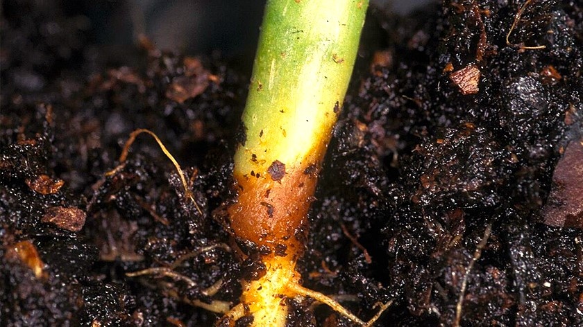 - Изменение цвета корневой шейки: нормальный светло-зеленый цвет может смениться на серовато-бурое кольцо.