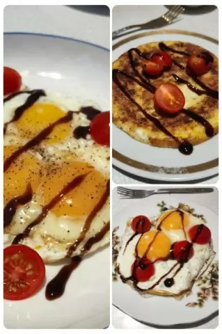 Завтрак завершается красивой подачей блюда: каждую порцию украшают свежими помидорами и бальзамическим соусом, превращая обычное утро в маленький праздник для глаз и желудка.