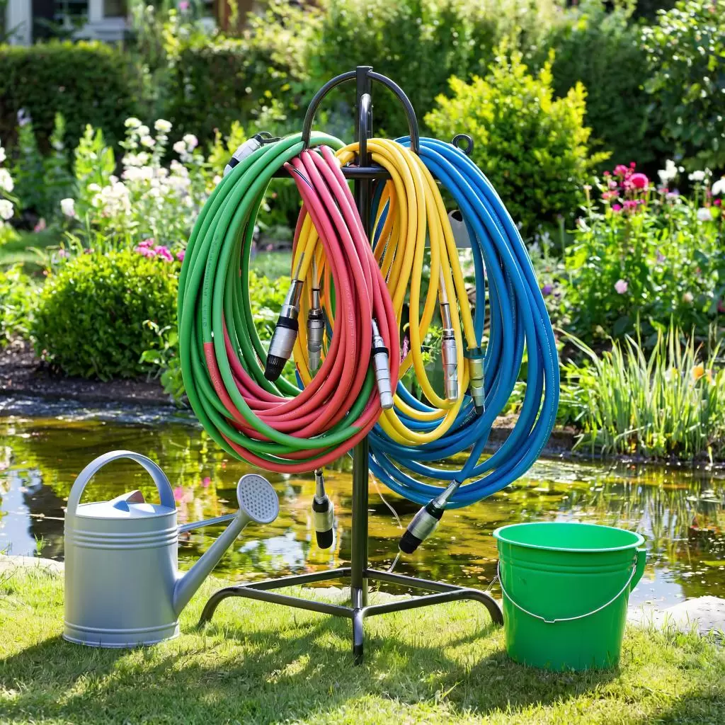 Для тех, кто предпочитает мобильность и не хочет сверлить стены, подойдут напольные стойки. Обычно выполненные из металла или прочного пластика, эти конструкции могут быть установлены в любом, удобном для пользователя, месте. Изогнутые стойки на устойчивой базе позволяют накручивать шланг по спирали. Плюс — абсолютная мобильность: такая стойка легко передвигается за солнцем или тенью. Установка не требует особых навыков — достаточно собрать стойку по инструкции и разместить ее на ровной поверхности. При этом риск перекручиваний и заломов сведен к минимуму. Современные модели доступны в различных дизайнах и цветах, что позволяет выбрать вариант, соответствующий стилю вашего сада.