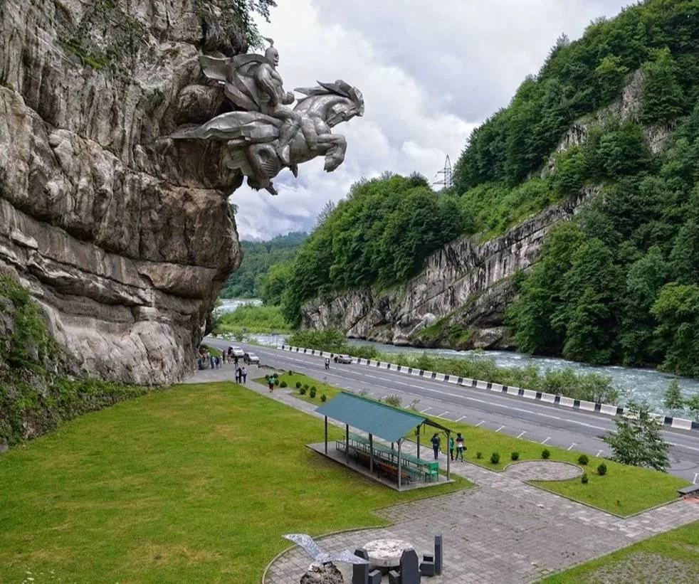 Особое место занимает монумент Уастырджи — один из самых узнаваемых символов Осетии. Величественная скульптура, словно вырывающаяся из скалы, олицетворяет покровителя мужчин, путников и воинов и является важной частью духовного наследия осетинского народа.
